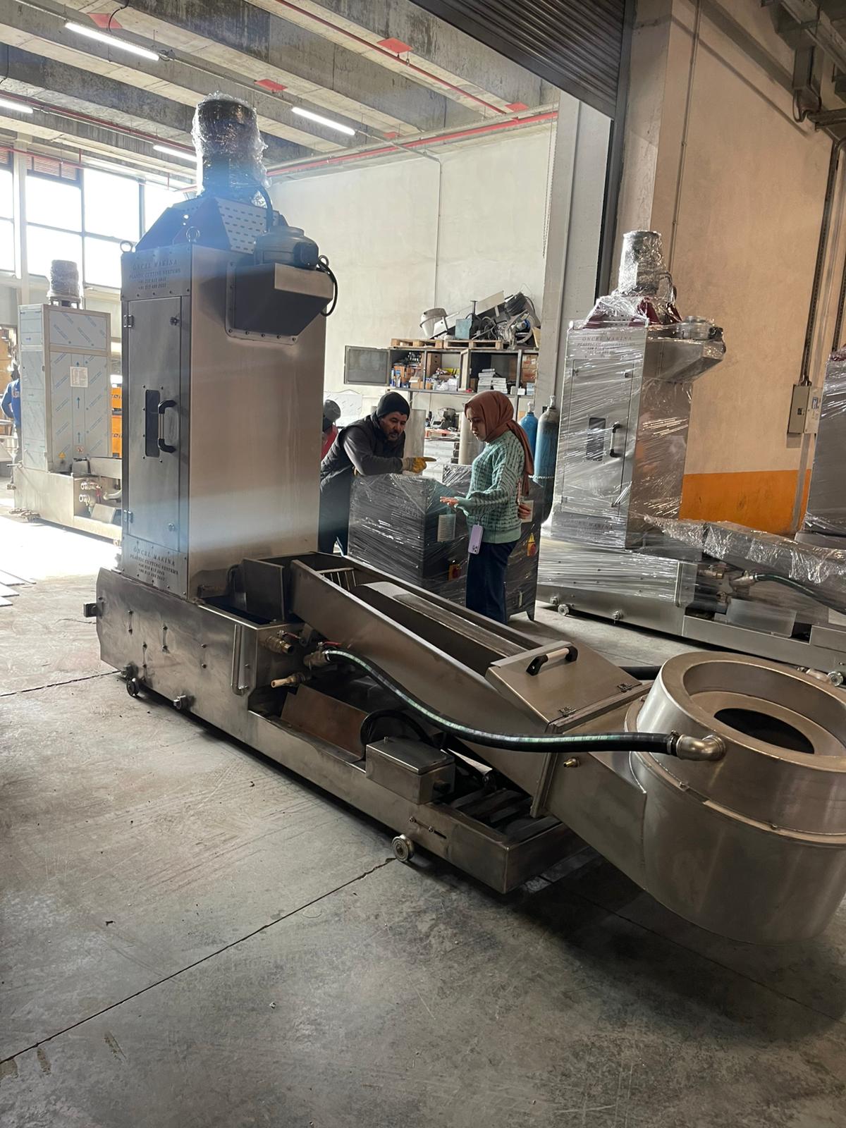 Plastik kafadan kesme makinası, ekstruderden çıkan eritilmiş plastik hammaddenin, kalıp çıkışında döner bıçaklar yardımıyla granül haline getirilmesini sağlar. Bu sistem, özellikle PE, PP ve benzeri termoplastik malzemelerde yüksek verimle çalışır. Kesim işleminin doğrudan kafa kısmında gerçekleşmesi, granül boyutlarının daha homojen olmasını sağlar ve üretim kalitesini artırır.